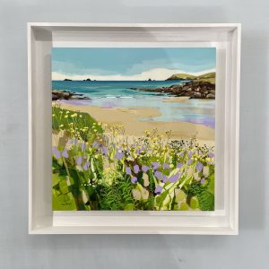 With box frames the artwork is recessed behind glass. The glass is held away from the art using a spacer of various depths and colours to suit the frame and work. Box frames provide a window or floating effect offering depth and interest to the piece. Box frames can be used for three-dimensional objects and is also very striking for works on paper.